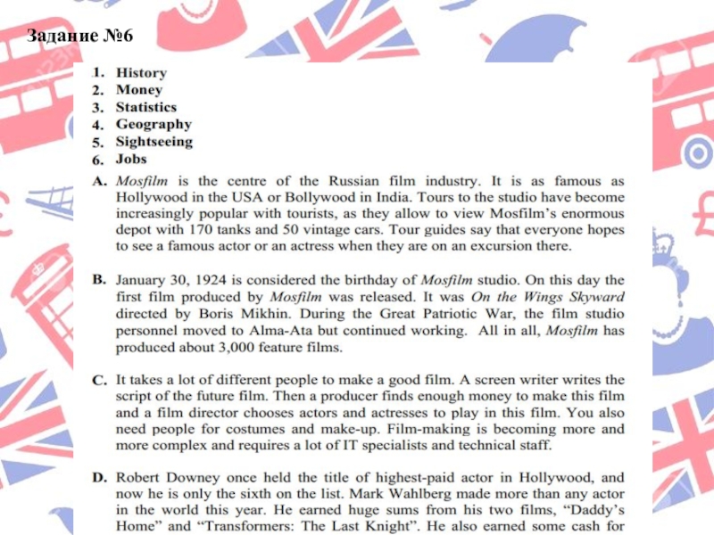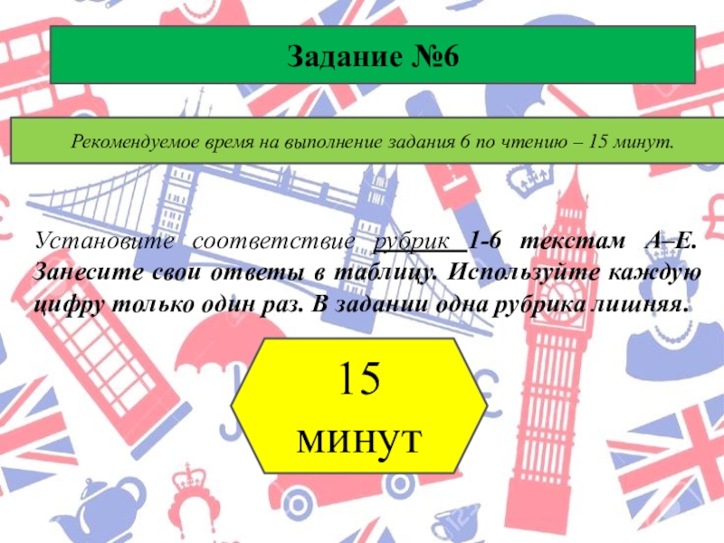 Рекомендуемое время на выполнение задания 6 по чтению – 15 минут.