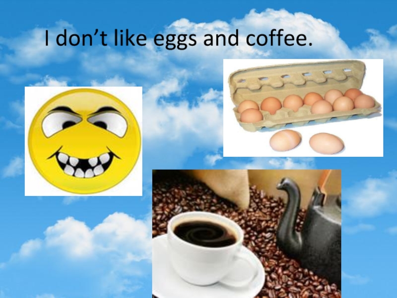 Слайд 4I don’t like eggs and coffee.