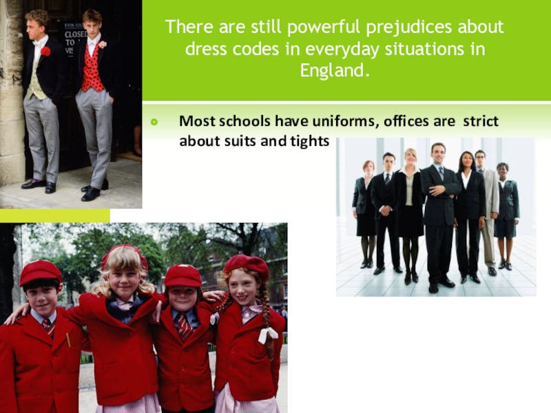 Most schools have uniforms, offices are strict about suits and tights