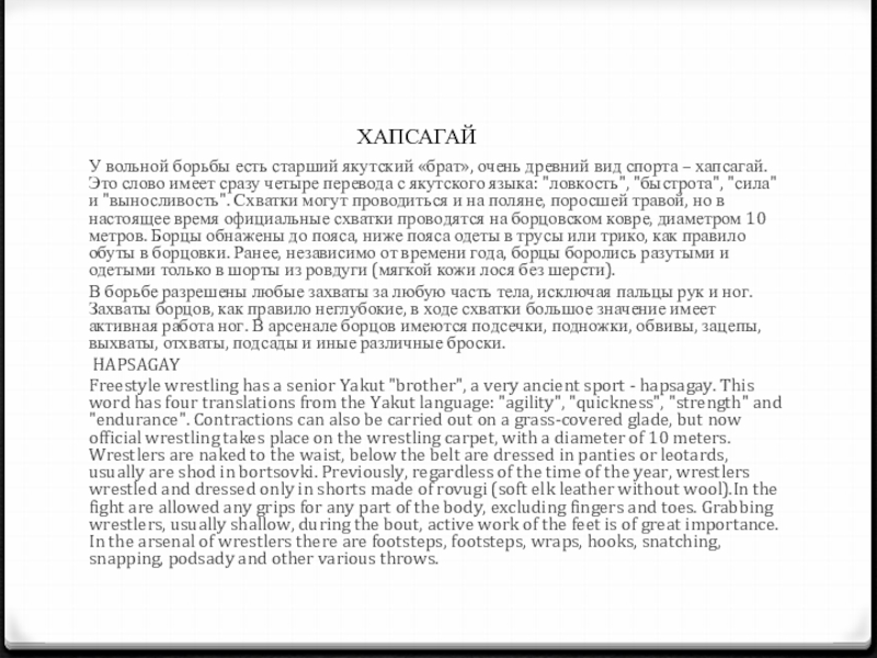 Слайд 6У вольной борьбы есть старший якутский «брат», очень древний вид спорта