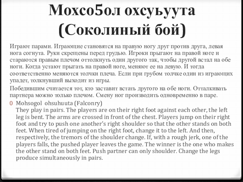 Слайд 24Мохсо5ол охсуьуута (Соколиный бой)