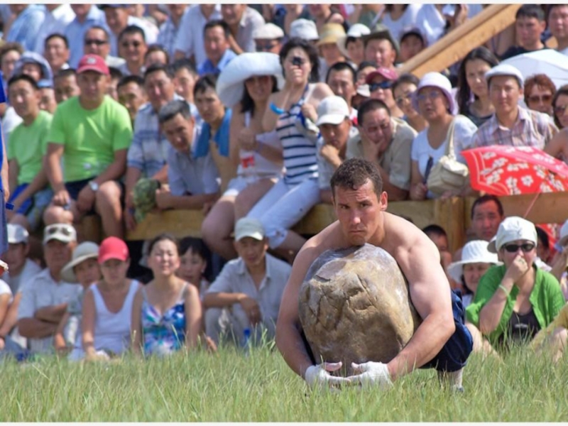 Местные богатыри состязаются в переноске камня. Для этого находится самый