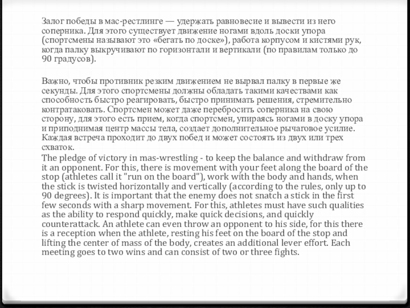 Слайд 5Залог победы в мас-рестлинге — удержать равновесие и вывести из него