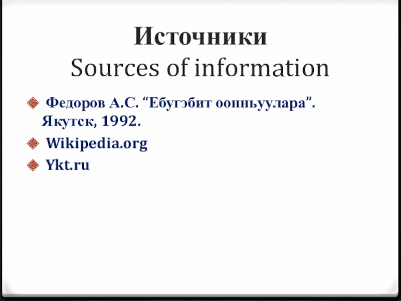 Федоров А.С. “Ебугэбит оонньуулара”. Якутск, 1992.