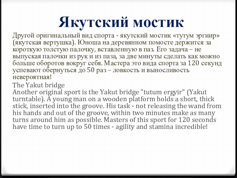 Другой оригинальный вид спорта - якутский мостик «тутум эргиир» (якутская