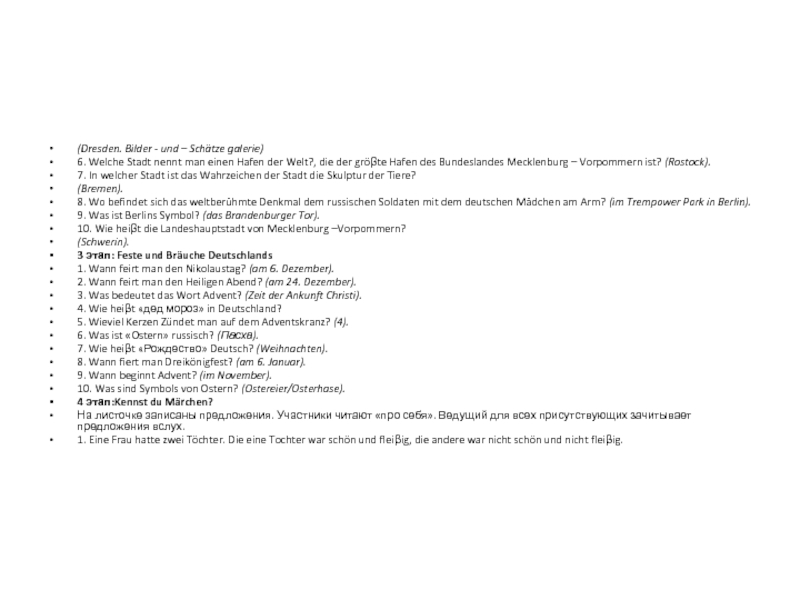 Викторина1. Викторина (7 – ой класс)1 этап. Wissenstoto – «Wo spricht man deutsch?» Allgemeines über Deutschland1. In
