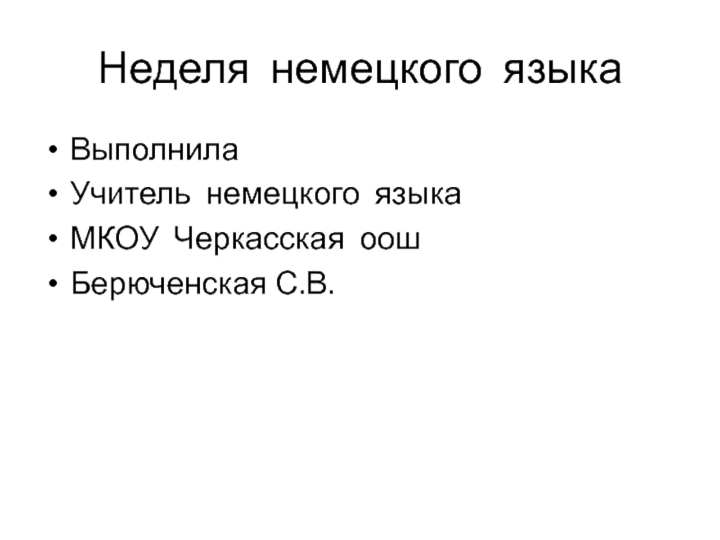 Неделя немецкого языкаВыполнилаУчитель немецкого языкаМКОУ Черкасская оош Берюченская С.В.