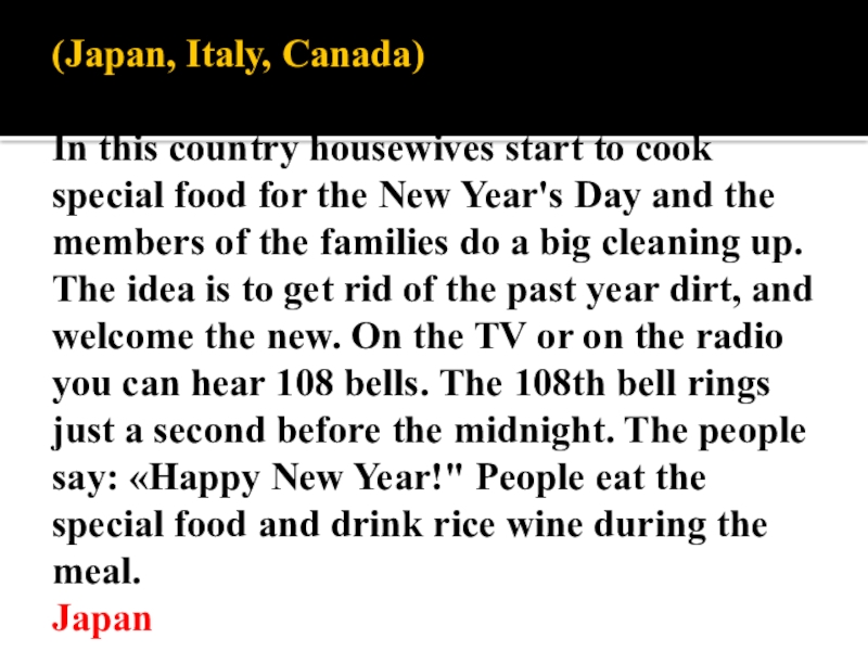 Слайд 3 (Japan, Italy, Canada) In this country housewives start to cook special
