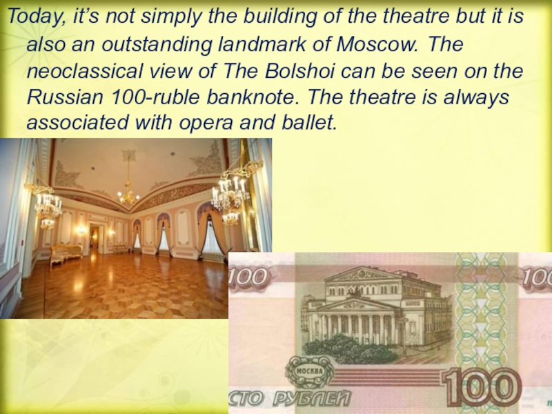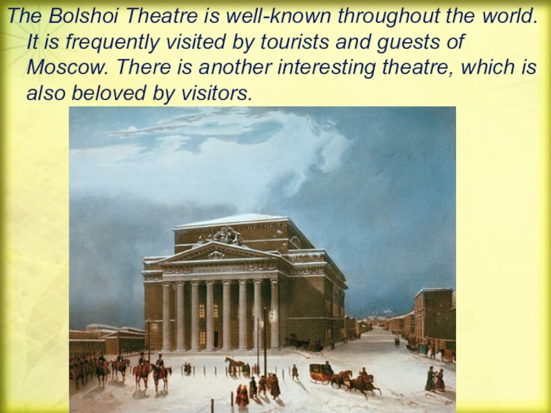 Слайд 9The Bolshoi Theatre is well-known throughout the world. It is frequently