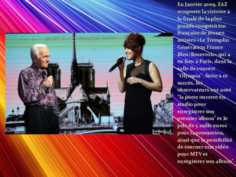 Слайд 9En Janvier 2009, ZAZ remporte la victoire à la finale de