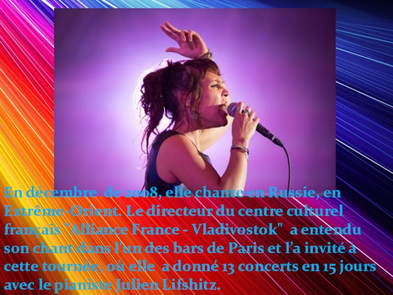 Слайд 8En décembre de 2008, elle chante en Russie, en Extrême-Orient. Le