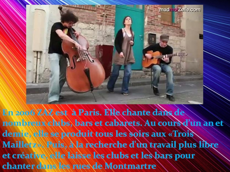 Слайд 6En 2006 ZAZ est à Paris. Elle chante dans de nombreux