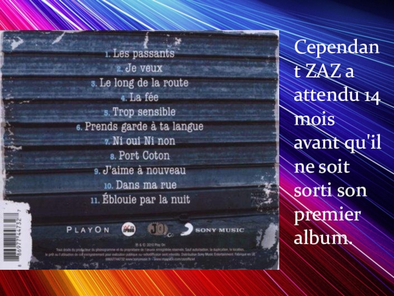 Слайд 10Cependant ZAZ a attendu 14 mois avant qu'il ne soit sorti