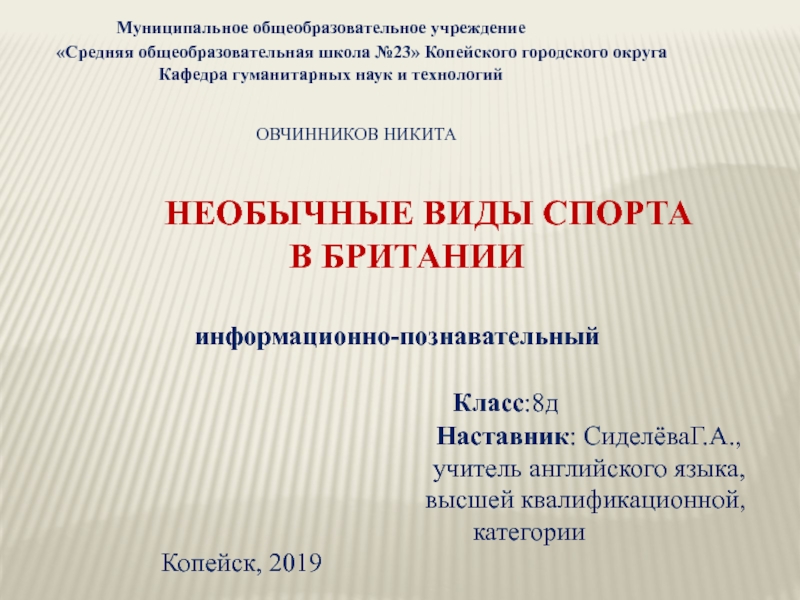 «Средняя общеобразовательная школа №23» Копейского городского округа