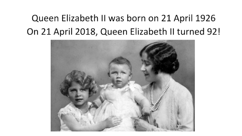 Слайд 3Queen Elizabeth II was born on 21 April 1926