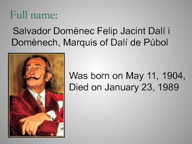 Salvador Domènec Felip Jacint Dalí i Domènech, Marquis of Dalí de Púbol