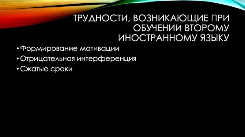 Трудности, возникающие при обучении второму иностранному языкуФормирование мотивацииОтрицательная интерференцияСжатые сроки