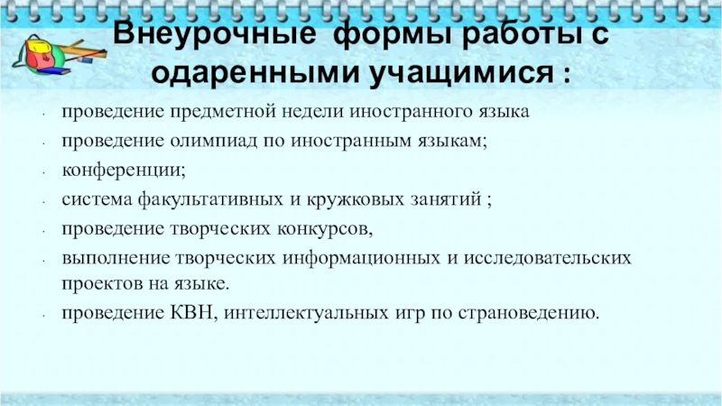 Слайд 11Внеурочные формы работы с одаренными учащимися :