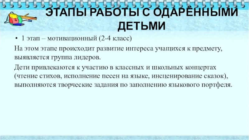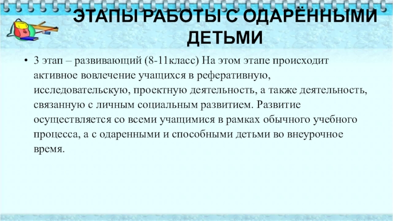 ЭТАПЫ РАБОТЫ С ОДАРЁННЫМИ ДЕТЬМИ