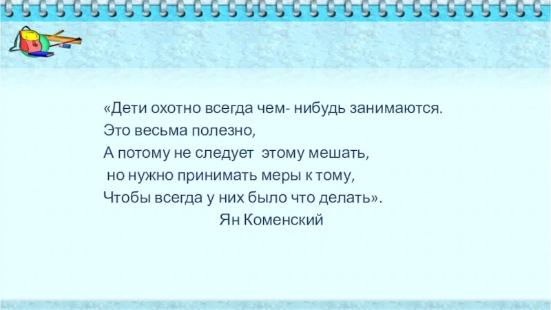 Слайд 15«Дети охотно всегда чем- нибудь занимаются.