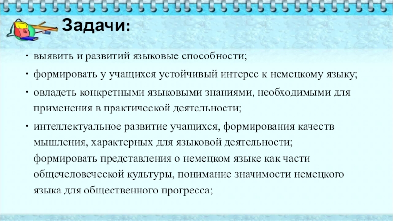 формировать представления о немецком языке как части общечеловеческой культуры, понимание значимости немецкого языка для общественного прогресса;