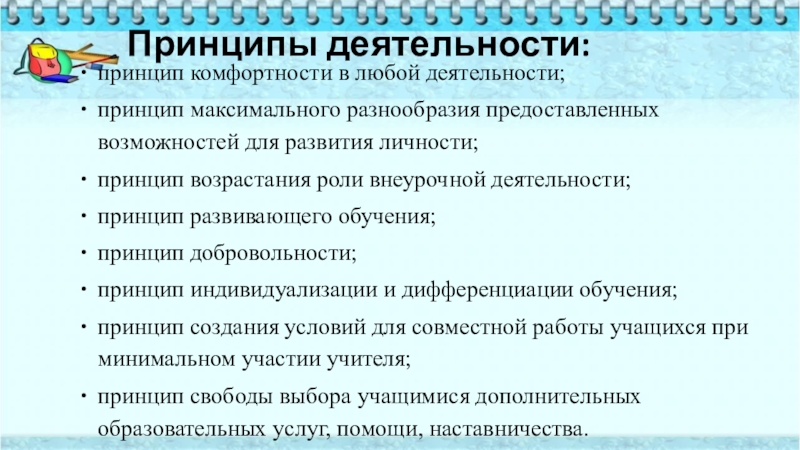принцип создания условий для совместной работы учащихся при минимальном участии учителя;
