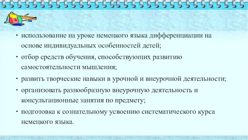 использование на уроке немецкого языка дифференциации на основе индивидуальных особенностей детей;
