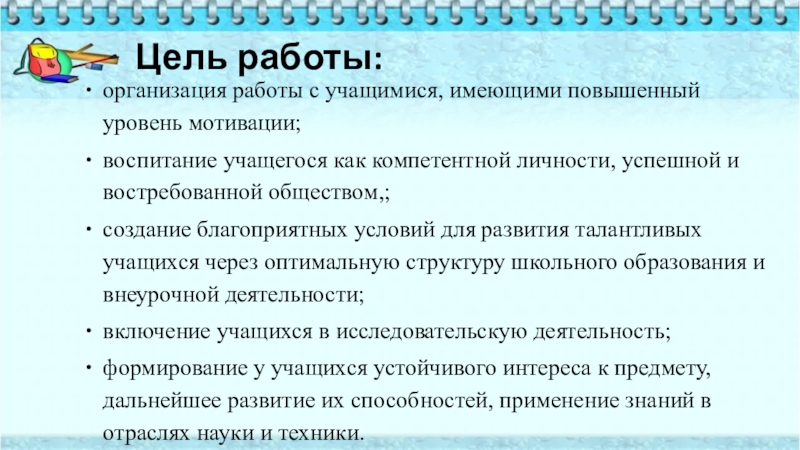 организация работы с учащимися, имеющими повышенный уровень мотивации;
