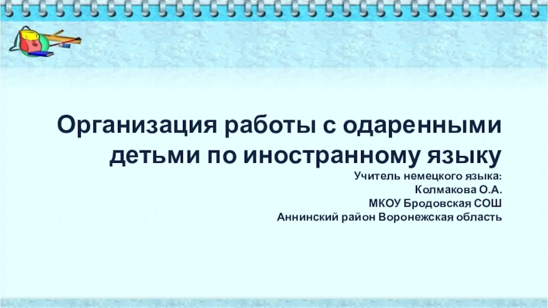 Слайд 1Организация работы с одаренными детьми по иностранному языку
