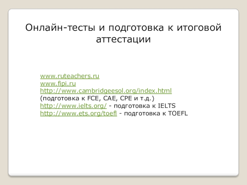 Слайд 23Онлайн-тесты и подготовка к итоговой аттестации