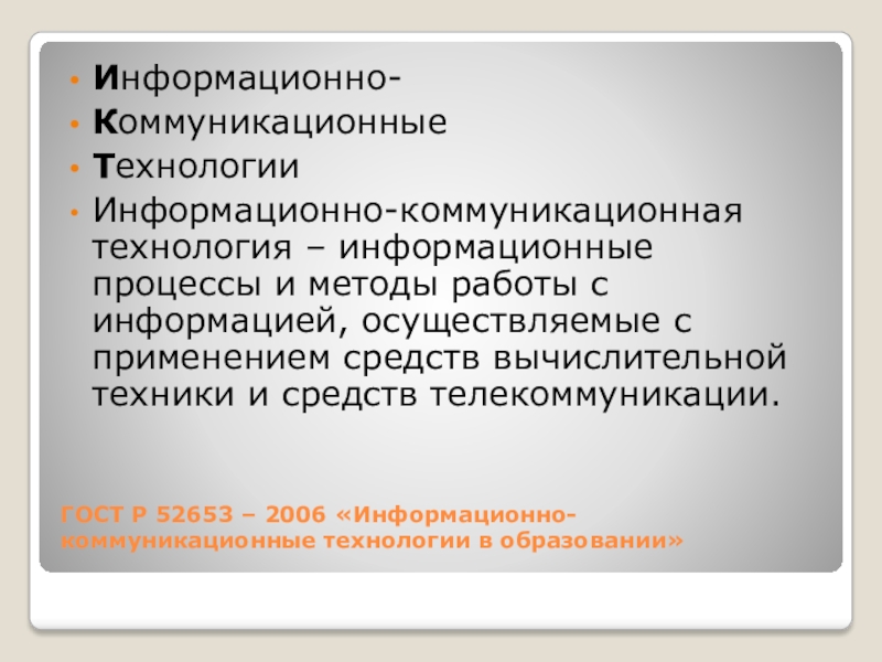 Слайд 4ГОСТ Р 52653 – 2006 «Информационно-коммуникационные технологии в образовании»