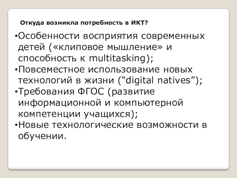 Требования ФГОС (развитие информационной и компьютерной компетенции учащихся);
