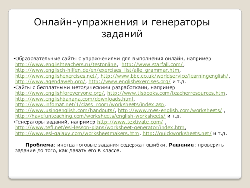 Слайд 22Онлайн-упражнения и генераторы заданий