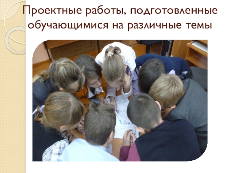 Слайд 15Проектные работы, подготовленные обучающимися на различные темы