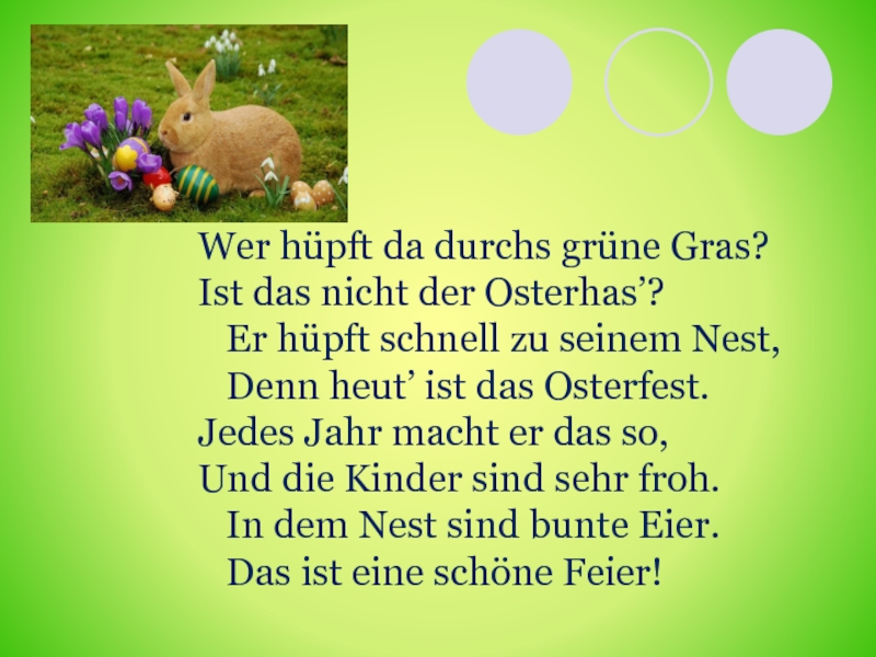 Слайд 8Wer hüpft da durchs grüne Gras?