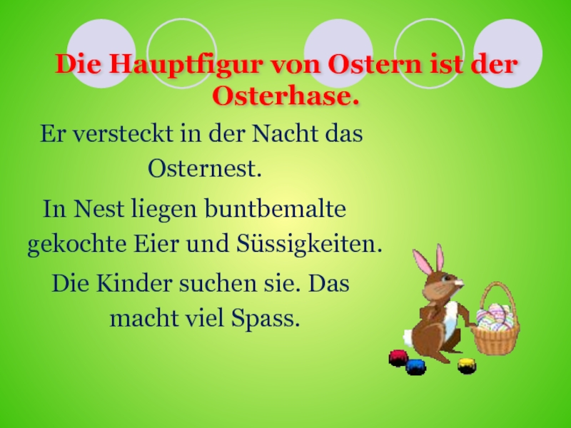 Слайд 9Die Hauptfigur von Ostern ist der Osterhase.