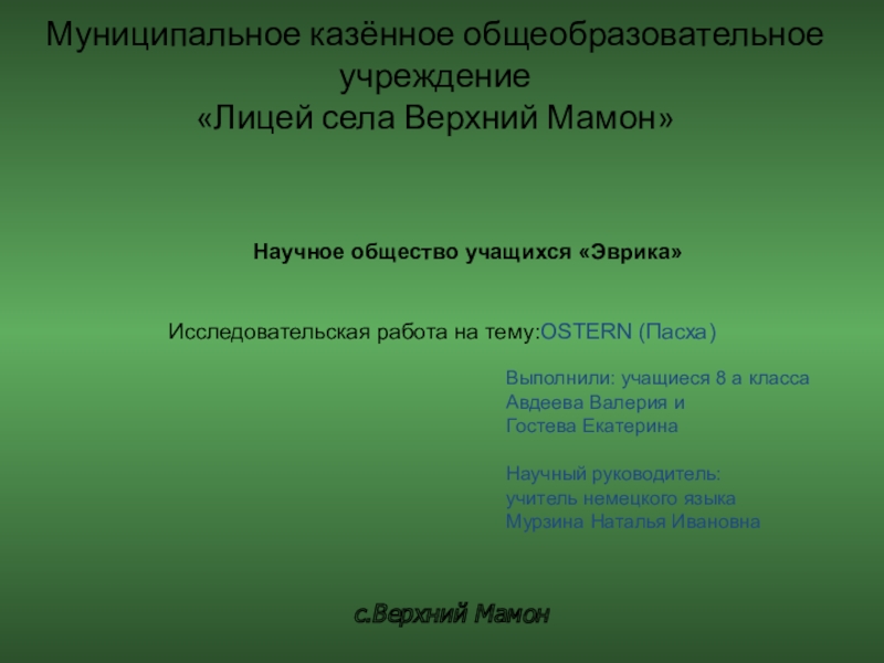 Исследовательская работа на тему:OSTERN (Пасха)