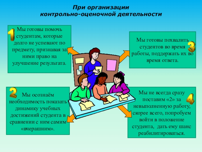 Мы готовы похвалить студентов во время работы, поддержать их во время ответа.