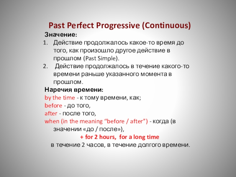 Past Perfect Progressive (Continuous)
