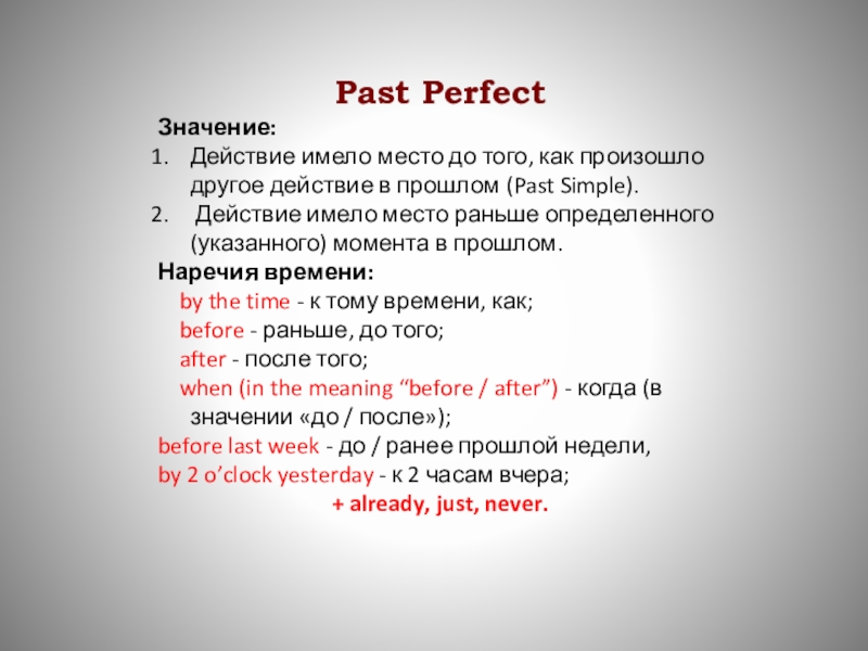 Past Perfect
