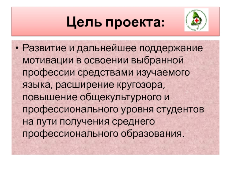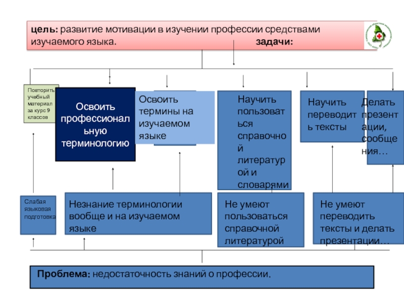 Слайд 12цель: развитие мотивации в изучении профессии средствами изучаемого языка.
