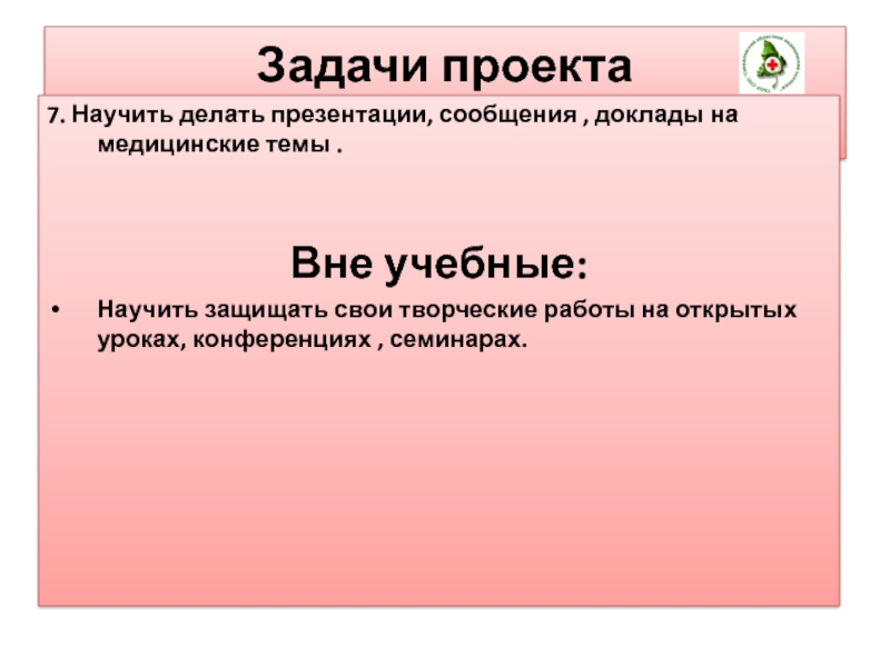 7. Научить делать презентации, сообщения , доклады на медицинские темы