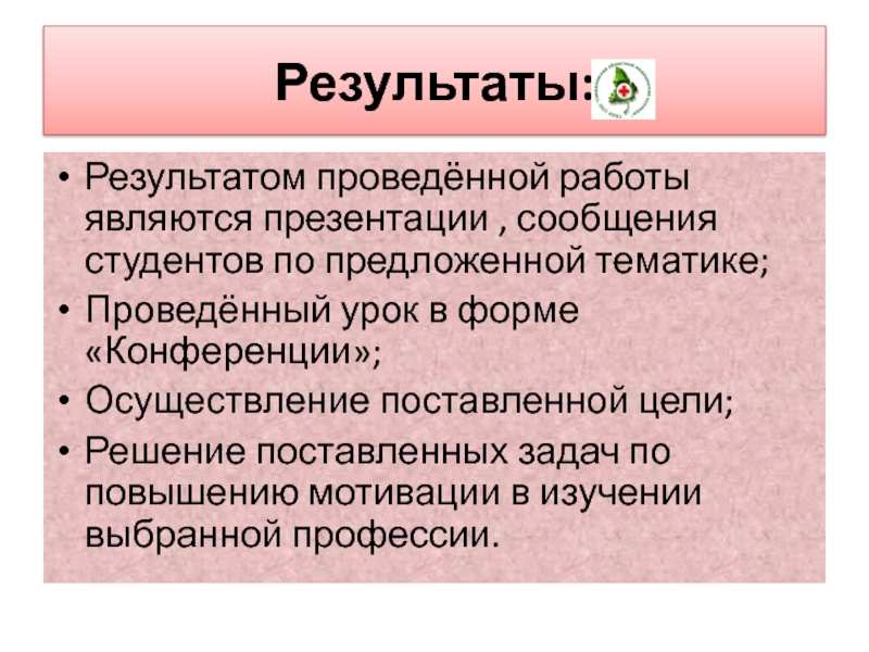 Решение поставленных задач по повышению мотивации в изучении выбранной профессии.