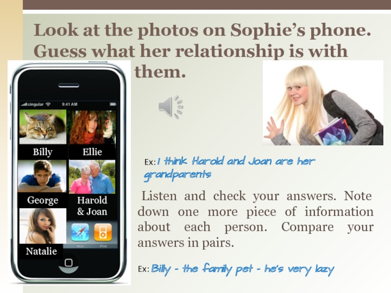 Listen and check your answers. Note down one more piece of information about each person. Compare your answers in pairs.