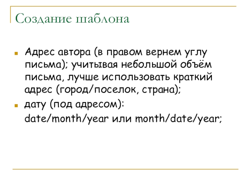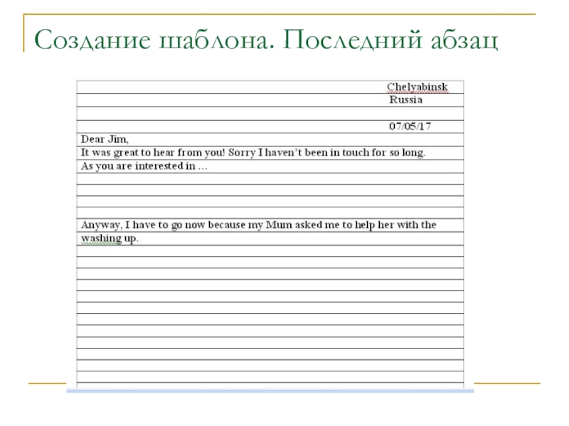 Очень важно иметь шаблон письма с готовыми фразами адреса, приветствия и