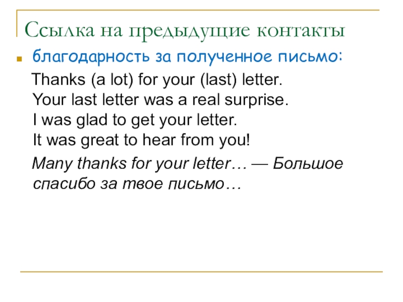 Many thanks for your letter… — Большое спасибо за твое письмо…