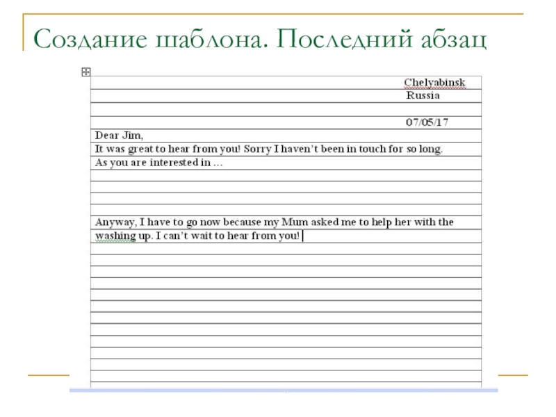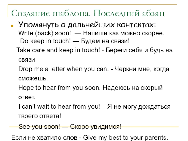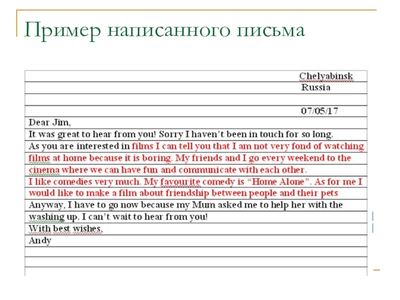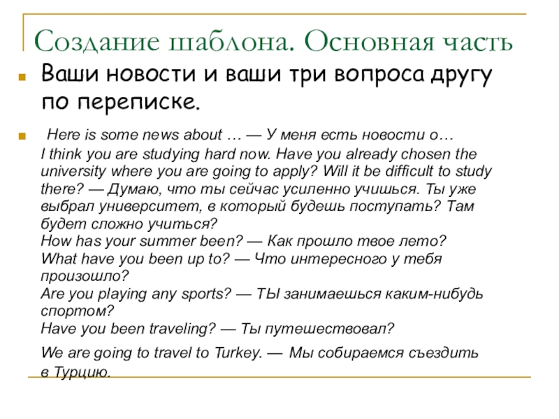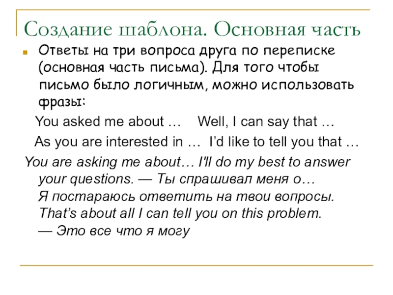 окончания письма. Это даст возможность максимально сосредоточиться на ответах трёх вопросов вашему другу по переписке.