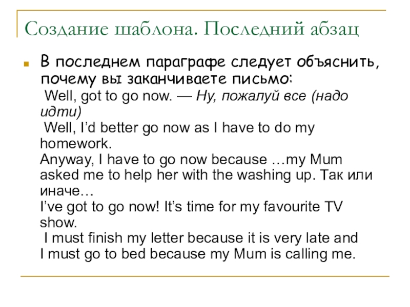 Well, got to go now. — Ну, пожалуй все (надо идти)
