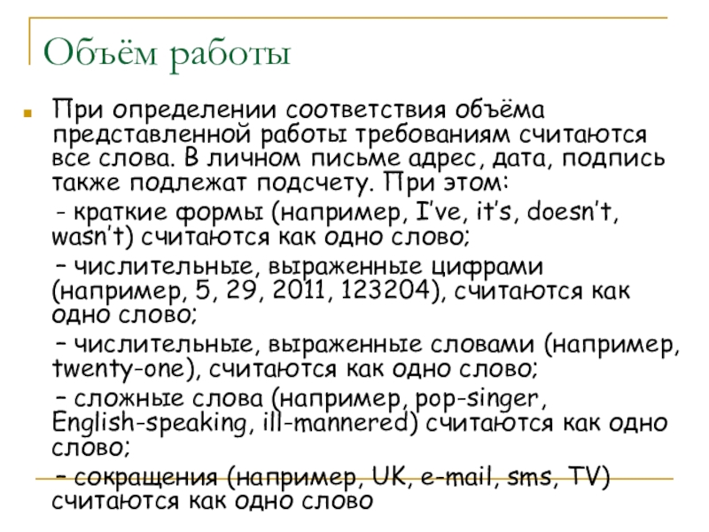 При определении соответствия объёма представленной работы требованиям считаются все слова.