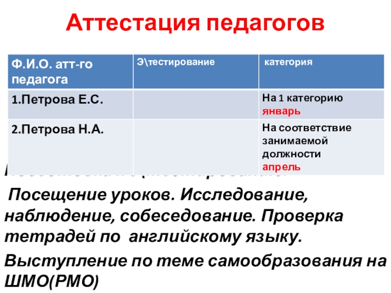 Посещение уроков. Исследование, наблюдение, собеседование. Проверка